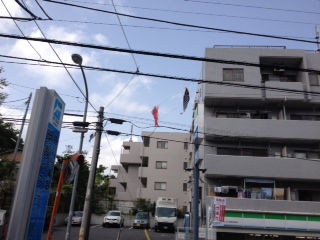 明青ゼミナールの向かいのビルに大きな鯉のぼりが気持ち良さそうに泳いでいたので、思わず写真を撮ってしまいました。